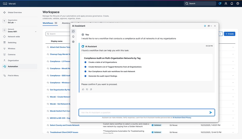 即日起,Meraki、Catalyst、ISE、Nexus 等平台的工作流程可透過 AI 助理自動化執行,簡單指令即可完成過去需手動操作的任務。