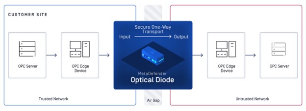 與Enero Solutions合作,我們從傳統系統中帶來 OPC UA 資料饋送,而無需修改原始系統。使用MetaDefender Optical Diode (Fend) 的 OPC 通訊協定轉換採用多步驟、低延遲的方式,將 OPC 資料安全地暴露在 OT 網路之外,而不會為不良分子引入潛在的攻擊媒介。