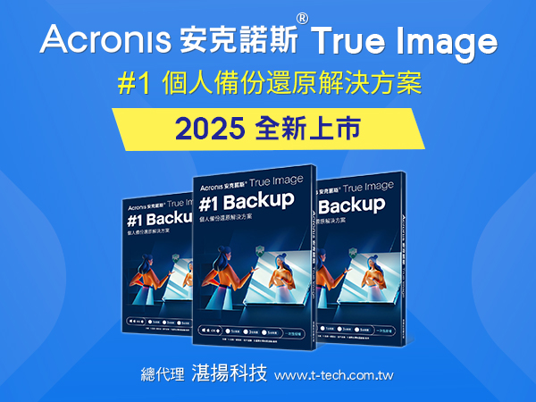 Acronis總代理 湛揚科技表示:「考量到多數使用者並非資安專家,Acronis True Image 2025 操作簡單、容易上手,只需一鍵即可進行備份及復原,不需複雜設定,一般用戶、學生或小型工作室都能輕鬆使用,保護重要的機密資料。」 隨著勒索攻擊與資料外洩事件頻傳,資料備份不再只是專業人士的需求,而是每個人都該具備的基本防護。Acronis True Image 2025 透過 AI 技術與直覺友善介面,讓備份不再複雜,把「安全備份」自然融入日常使用,人人都能輕鬆做到。