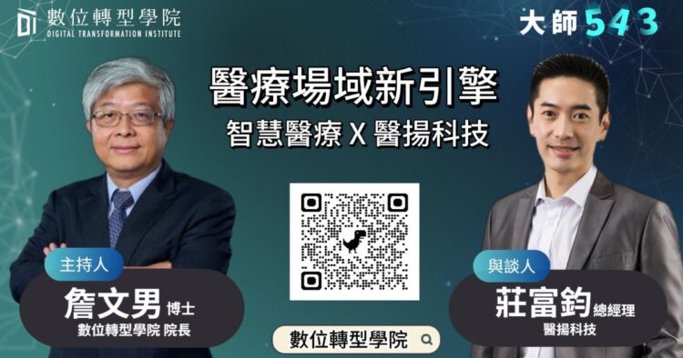 醫療產業是數位科技影響最深、同時也最謹慎的關鍵領域之一。數位轉型學院院長詹文男在《大師 543》節目中,特別邀請臺灣智慧醫療隱形冠軍 – 醫揚科技總經理莊富鈞,深入分享其如何以醫療科技為核心,推動醫療體系從數位化、行動化走向AI化,為全球醫療場域打造可靠而可擴展的智慧基礎。