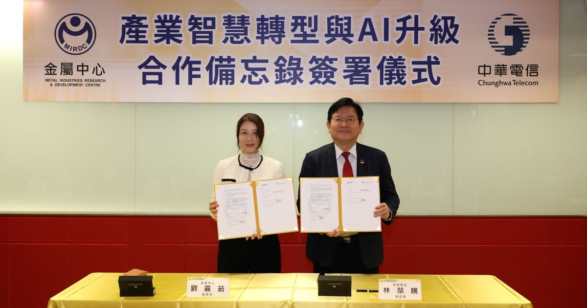 為響應全球人工智慧 AI 浪潮與產業轉型需求,中華電信 19 日與金屬工業研究發展中心(正式簽署「產業智慧轉型與 AI 升級合作備忘錄」。雙方將整合政策推動、前瞻技術研發與通路資源的核心能量,規劃從「智慧製造、智慧醫療及無人載具等智慧化轉型與 AI 升級」,全面提升智慧化意識、技術驗證到跨域應用,共同打造 AI 應用生態系,協助國內企業從技術驗證走向規模化落地,開創 AI 驅動的永續未來。