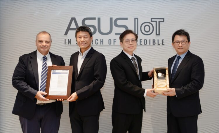 華碩智慧物聯網榮獲IEC 62443-4-1認證,由華碩全球副總裁張權德(左二)代表受證。