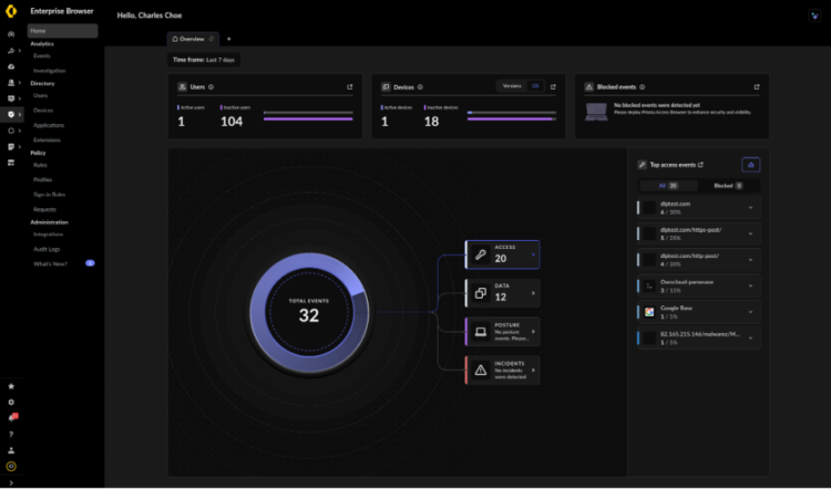 目前 85% 的工作活動都發生在瀏覽器中,這也導致資料外洩及監控缺口的風險。根據 Palo Alto Networks 2025 年 Unit 42 全球事件回應報告,近半(44%)的資安事件與員工瀏覽器上的惡意活動有關,例如網路釣魚、網址重導濫用與惡意軟體下載等。