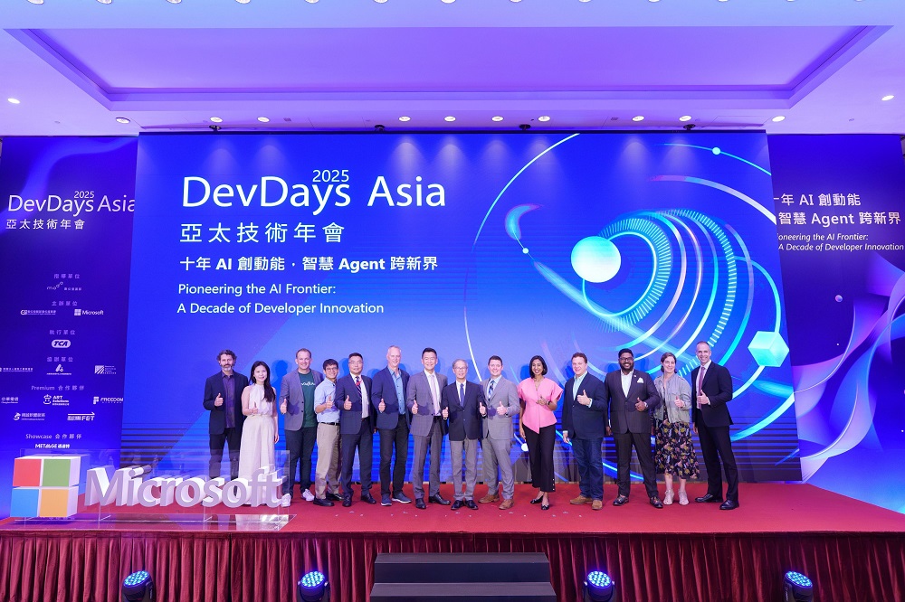 由數位發展部指導,數位發展部數位產業署與台灣微軟共同舉辦的「DevDays Asia 2025 亞太技術年會」9月23日於台北盛大登場。今年適逢活動邁入第十週年,台灣微軟特別感謝數位發展部長期支持,讓這場技術盛會持續成為串聯全球技術與在地創新的交流平台,將全球最新雲端、AI 與數位科技帶進台灣,並透過產官學研與開發者社群的合作,推動人才培育、產業轉型與國際接軌。歷經十年的累積,這場亞太區指標性的技術盛會,已是最具影響力的旗艦級 AI 年會之一。2025 年以「十年 AI 創動能,智慧 Agent 跨新界」為題,連續三天聚焦 AI 前瞻議題與多代理人(Multi-Agent)時代的最新趨勢,並邀集超過 20 名微軟總部重量級 AI 技術專家與會,分享最新觀點與應用。