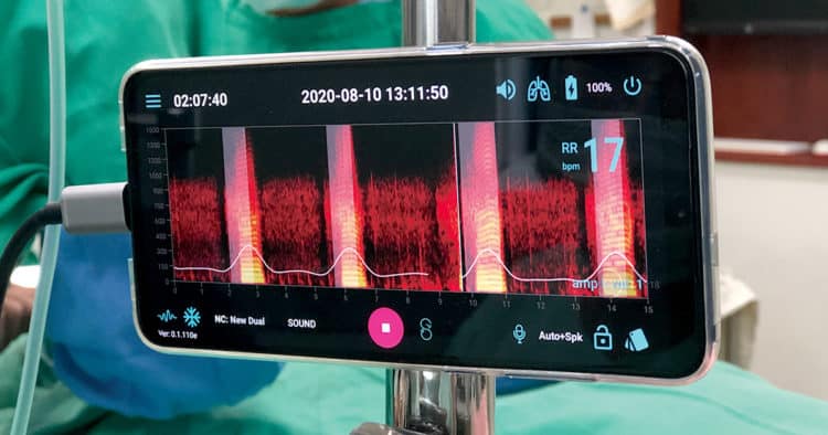 由於AI即時呼吸聽診監測儀會完整收集呼吸資訊,也包含有肺部早期徵狀與病灶的呼吸資訊,當同時透過人工智慧技術進行比對後,再透過圖像化技術呈現收集到的醫療數據,並提供多項肺部疾病分類。如此一來,臨床醫師自然有機會挖掘出病患潛在的疾病,進而獲得早期治療的機會。由於AI即時呼吸聽診監測儀實用性相當高,聿信醫療在希望協助醫師掌握住院病患的肺音狀況外,也可應用於麻醉手術上。