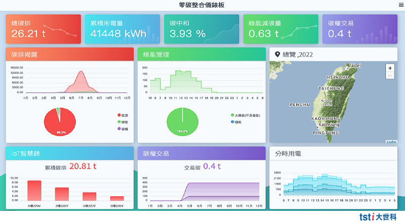 從系統與服務的廣度來看,大世科兼能提供企業能源規劃方案、EMS能源管理系統、ESG碳盤查、太陽能光電、儲能系統、綠電交易等能源解方,透過提供API降低產業既有系統的碳盤門檻及導入IOT自動化碳排運算,結合顧問服務並透過溫室氣體盤查再制定與執行有效減碳措施。