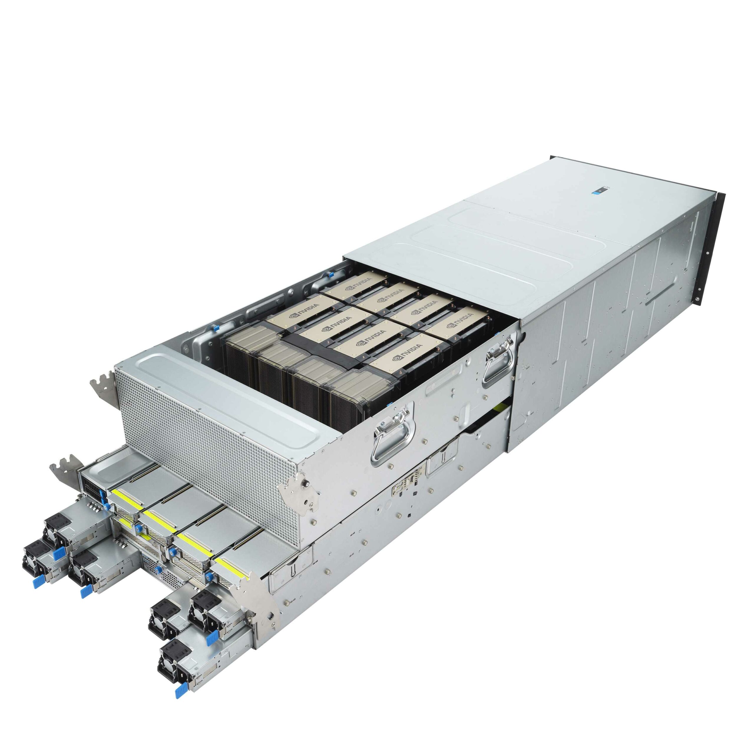 華碩ESC N8-E11是一款NVIDIA HGX H100人工智慧高階伺服器,其搭載八個NVIDIA H100 Tensor Core GPU,可節省AI訓練和運算時間,這款7U伺服器由兩個第四代Intel Xeon Scalable處理器提供動力,並設有專用的一對一NIC拓撲結構,可支援至多八組網卡,滿足高性能計算作業;此外,模組化設計除可縮短系統組裝時間,還能減少線材用量,降低風阻,提升散熱。